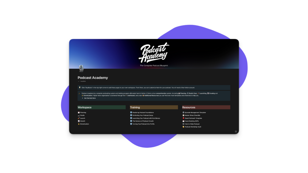You'll get immediate access to Podcast Academy hosted in a Notion at this limited-time discounted price.